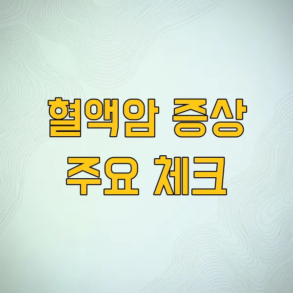 혈액암은 조기에 발견하는 것이 무엇보다 중요합니다. 우리 몸의 면역 체계와 밀접하게 관련된 혈액암은 다양한 형태로 나타날 수 있으며, 때로는 다른 질병과 혼동될 수도 있습니다. 평소 자신의 몸 상태를 주의 깊게 살피고, 의심되는 증상이 있다면 즉시 전문가와 상담하는 것이 현명합니다. 이 글에서는 혈액암의 주요 증상들을 구체적인 예시와 함께 살펴보고, 각 증상이 왜 나타날 수 있는지 명확하게 설명해 드립니다.